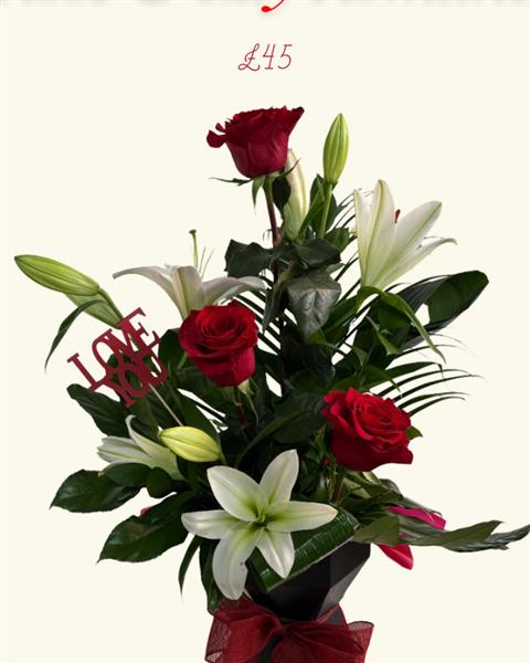 A beautifully balanced Valentine’s bouquet combining romantic red roses with elegant lilies. The rich passion of roses meets the soft grace of lilies, creating a timeless arrangement full of love, beauty, and meaning.